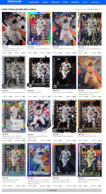 The Ben Rice rookie card has quickly become one of the most discussed cards of the year. If Rice continues to produce at a high level his cards could establish themselves as long term fixtures in the hobby. If his performance slows, the hype could fade and prices may fall.